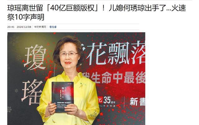 在琼瑶去世的第二天,儿媳何琇琼就联合出版社发布了声明,表明了自己的态度。