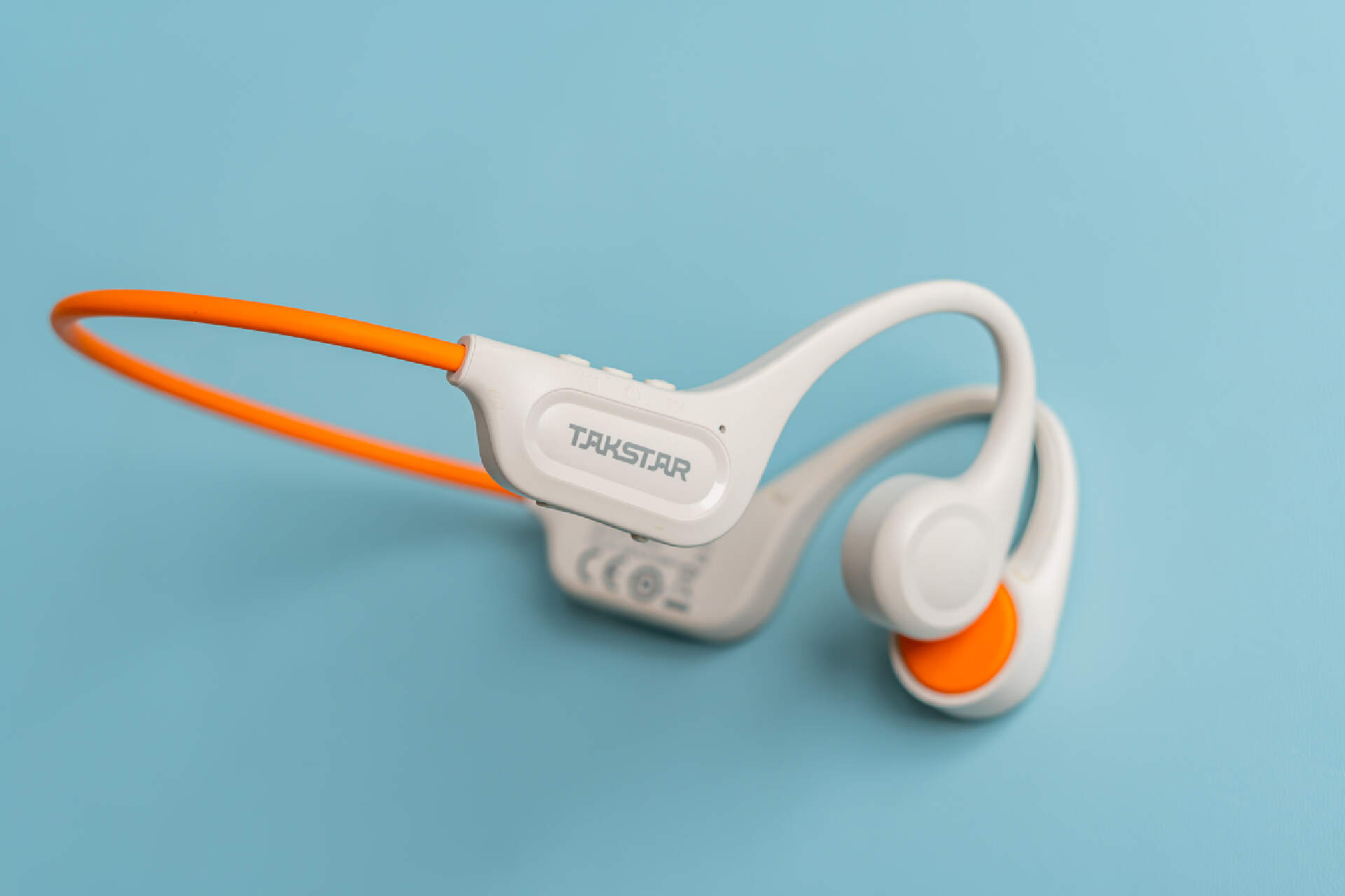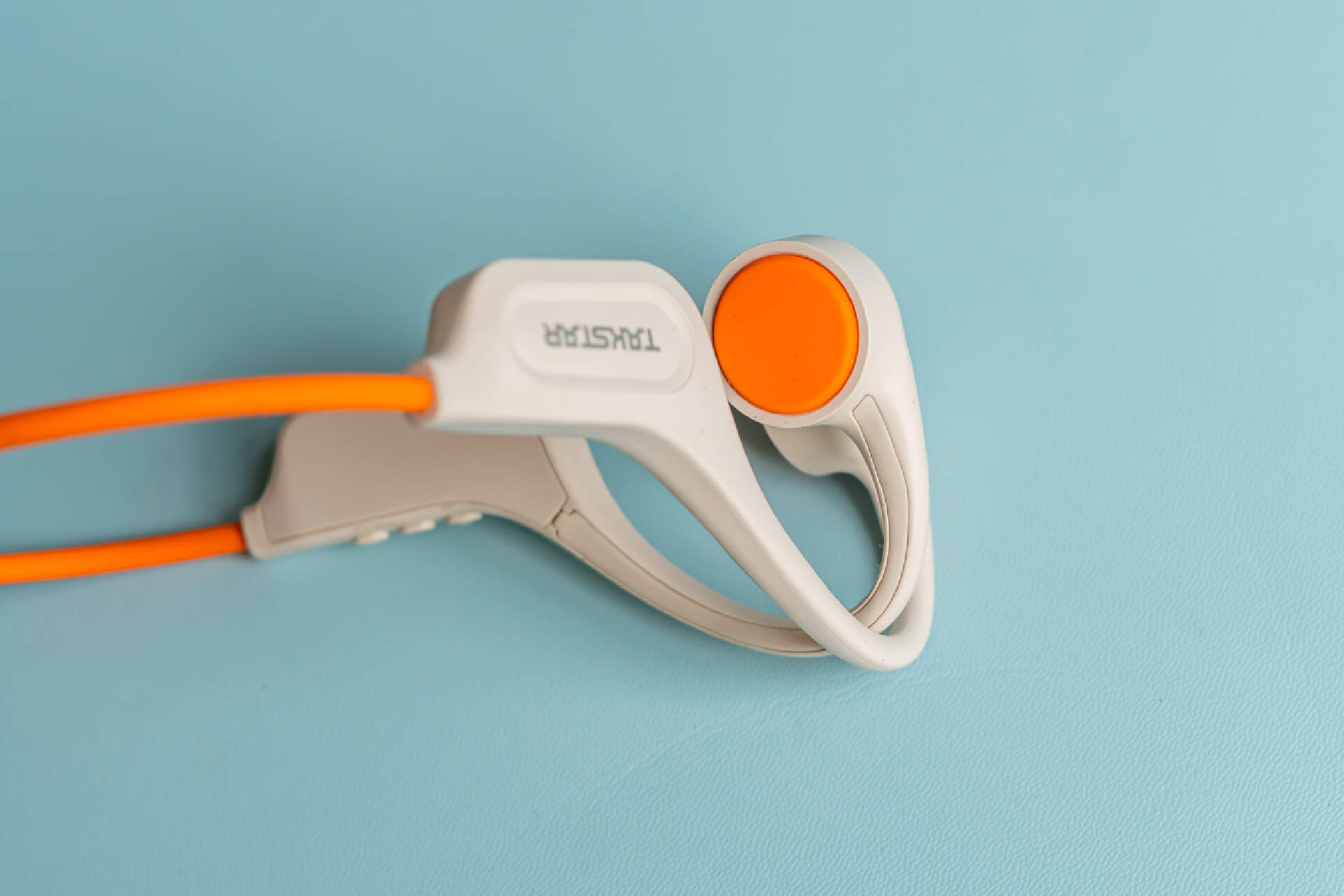 ▲▲得胜—LR100W 骨传导耳机整体属于比较传统的骨传导耳机造型,白色和橙色混搭的配色带来的是满满的活力,运动起来也能带来些许动力加成吧。
