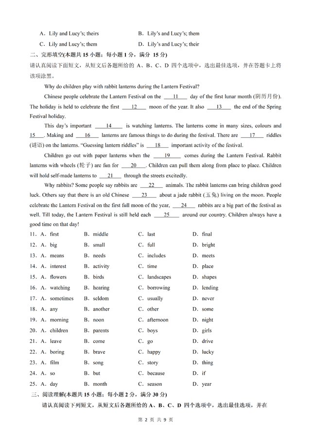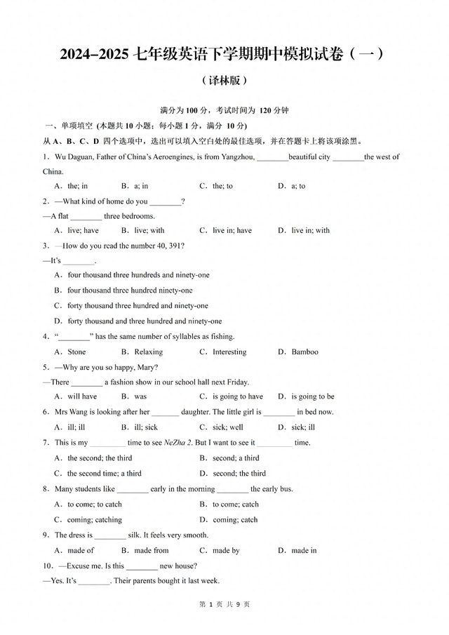 七下英语期中2套模拟试卷部分资料预览⬇️⬇️