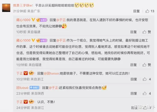 于正则回复:“她是铁娘子,不需要这种安慰,她可以扛过去的!”
