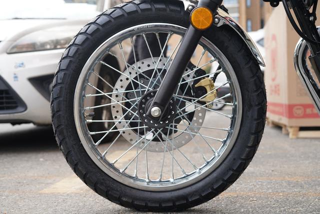 刹车与避震系统延续日系稳健风格。前轮220mm单碟配双活塞卡钳,后轮130mm鼓刹的组合,制动力道虽不激进,但线性反馈与低维护成本更契合目标用户需求。正立式前叉与双枪后减震的调校偏向舒适,过减速带时滤震柔和,坑洼路面载物骑行也能保持车身姿态稳定。或许极限弯道支撑性不如运动车型,但对通勤用户而言,“可靠耐用”远比参数漂亮更重要。