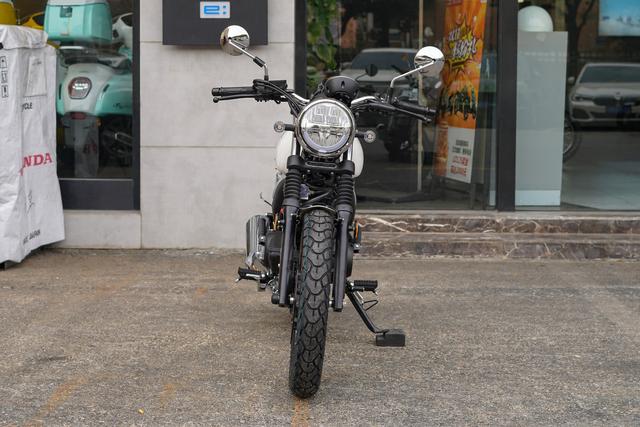 没有太多华丽的装饰,圆型卤素大灯与水滴油箱延续家族基因,但灯罩边缘的镀铬装饰与油箱立体贴花增添了几分精致感。车身线条简洁利落,钢管后货架与加长挡泥板的组合,既保留了工具车的功能性,又通过哑光漆面工艺弱化了粗糙感。最巧妙的是隐藏式排气管防烫罩设计,既保障安全性,又让侧颜线条更显干净。这种“低调中见细节”的手法,恰好契合务实用户“不张扬却讲究”的审美取向。
