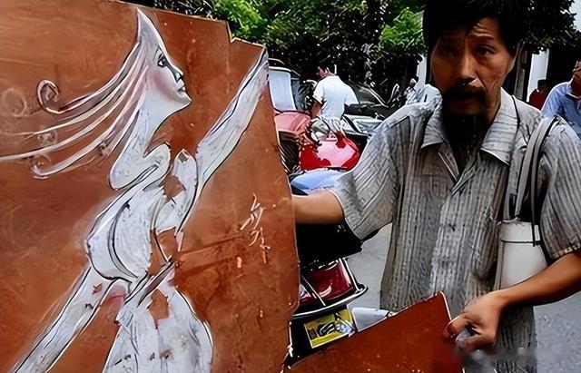 当看到徐荣发用左手在废弃木板上创作出精美的画作时,这位网友惊呆了。