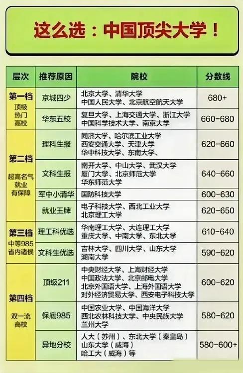 第1层的大学可谓是顶尖中的顶尖,这里汇聚着全国最顶级的教育资源、最前沿的学术研究成果以及最优秀的教师团队。能进入这一层的学生,无疑是站在了中国高等教育的金字塔尖,他们往往有着卓越的学术天赋、超强的学习能力和广泛的综合素质。
