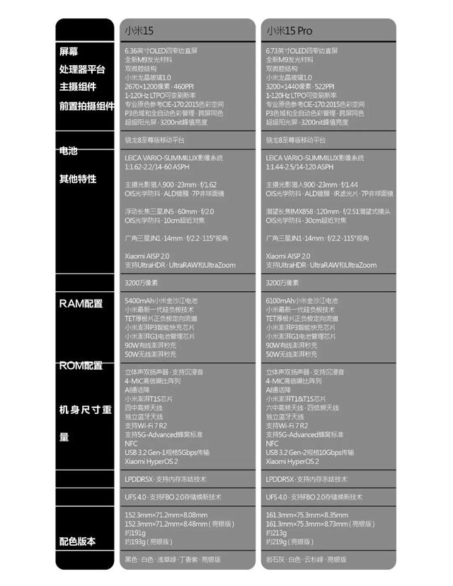 而小米15 Pro则是3个常规配色版本,都属于“低调和力量共存的表达”,并同样额外加上特别的亮银版。