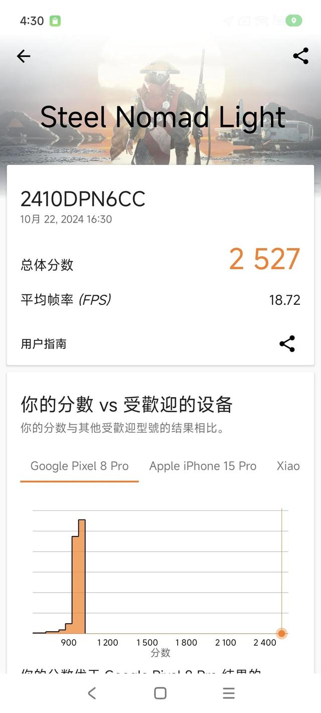 小米15 Pro的Steel Nomad Light光追性能成绩