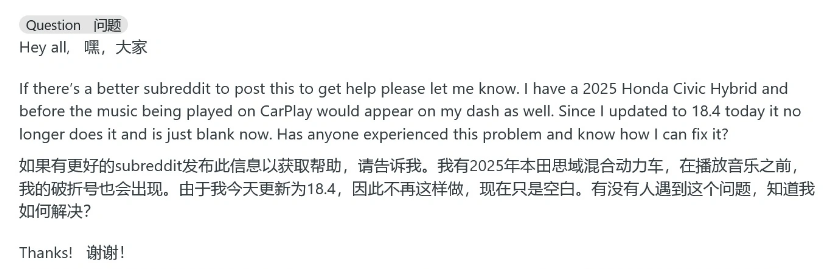 故障波及多个汽车品牌,包括本田、马自达、奥迪和福特等。用户尝试了重新配对手机、重启设备等多种解决方案均收效甚微。