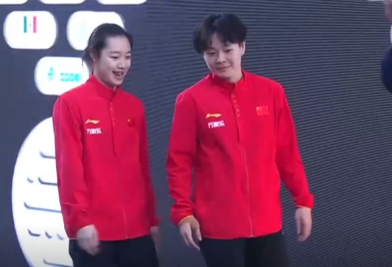 女子双人 3 米板项目中,中国组合陈艺文 / 林珊同样表现出色。作为中国跳水队的中坚力量,两人凭借丰富的比赛经验和精湛的技术,在赛场上游刃有余。首跳,她们选择难度系数 2.7 的 401B(向内翻腾半周屈体),动作整齐划一,入水瞬间水花如镜,轻松拿下 56.70 分。