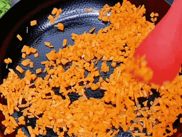 再把胡萝卜碎倒锅里翻炒一下,然后+粉条碎炒匀,一起倒进处理好的南瓜里,最近+上方所需的调味料拌匀即可。