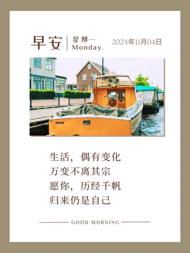 美好的一天从周一开始,早安祝福开启平淡的日子,美好的心情从此刻启程。秋风秋雨送凉意,拥抱深秋,迎接新天,浓浓深秋,愿你安好,心怀暖阳,收获幸福。尽享岁月温柔,眼里常存欢喜,享受晚秋的每一个清晨!