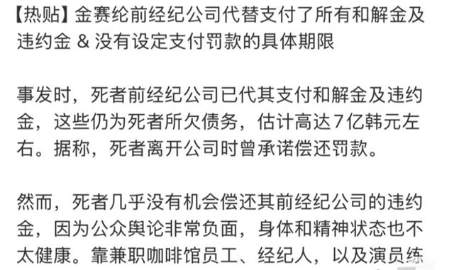 零星的支持与高额债务金赛纶生前被曝出高达7亿韩元的债务。