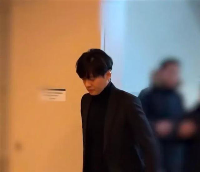 元彬身穿黑色西装,他的每一步都显得沉重无比。