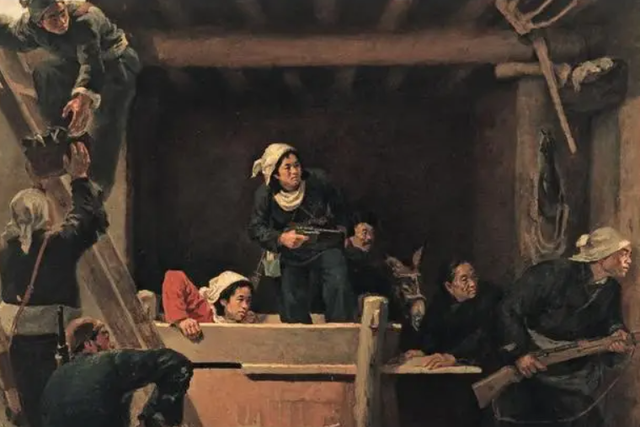 就在李振江指挥日伪军点燃大火时,意外发生了——一位村民突然从地下地道口跃出,冲向了李振江。