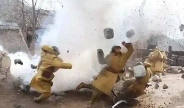 日军在进攻前先发动了猛烈的炮火轰击,企图通过炮弹和爆炸声摧毁南高村的防线,进而消灭潜藏的八路军和村民反抗力量。