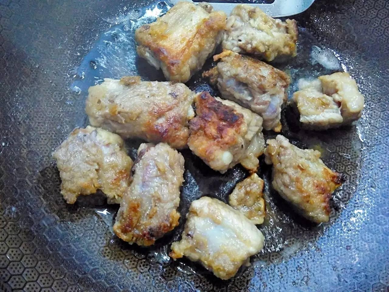 腌制好后取出排骨,去处干净排骨上的其他小料。