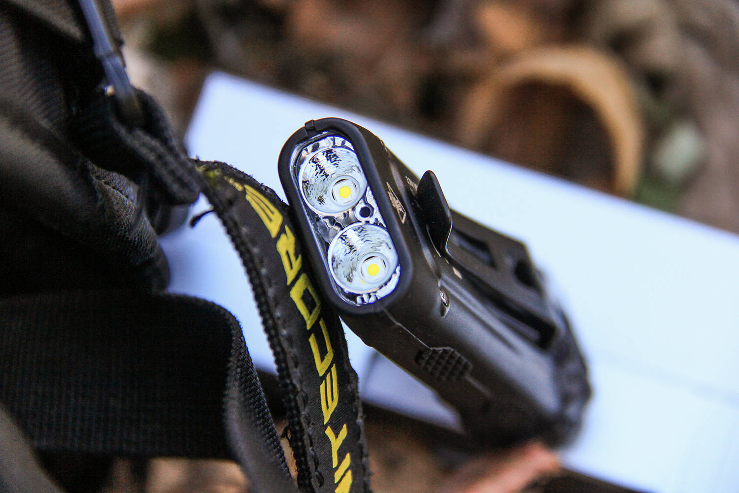EDC23的两颗UHi 25之间有一个小黑点,这是光感探测装置,手电关闭时如果灯头前有遮挡物,即便误碰开启高亮度,也会自动降低输出,避免过热而烫坏物品,安全更有保障。