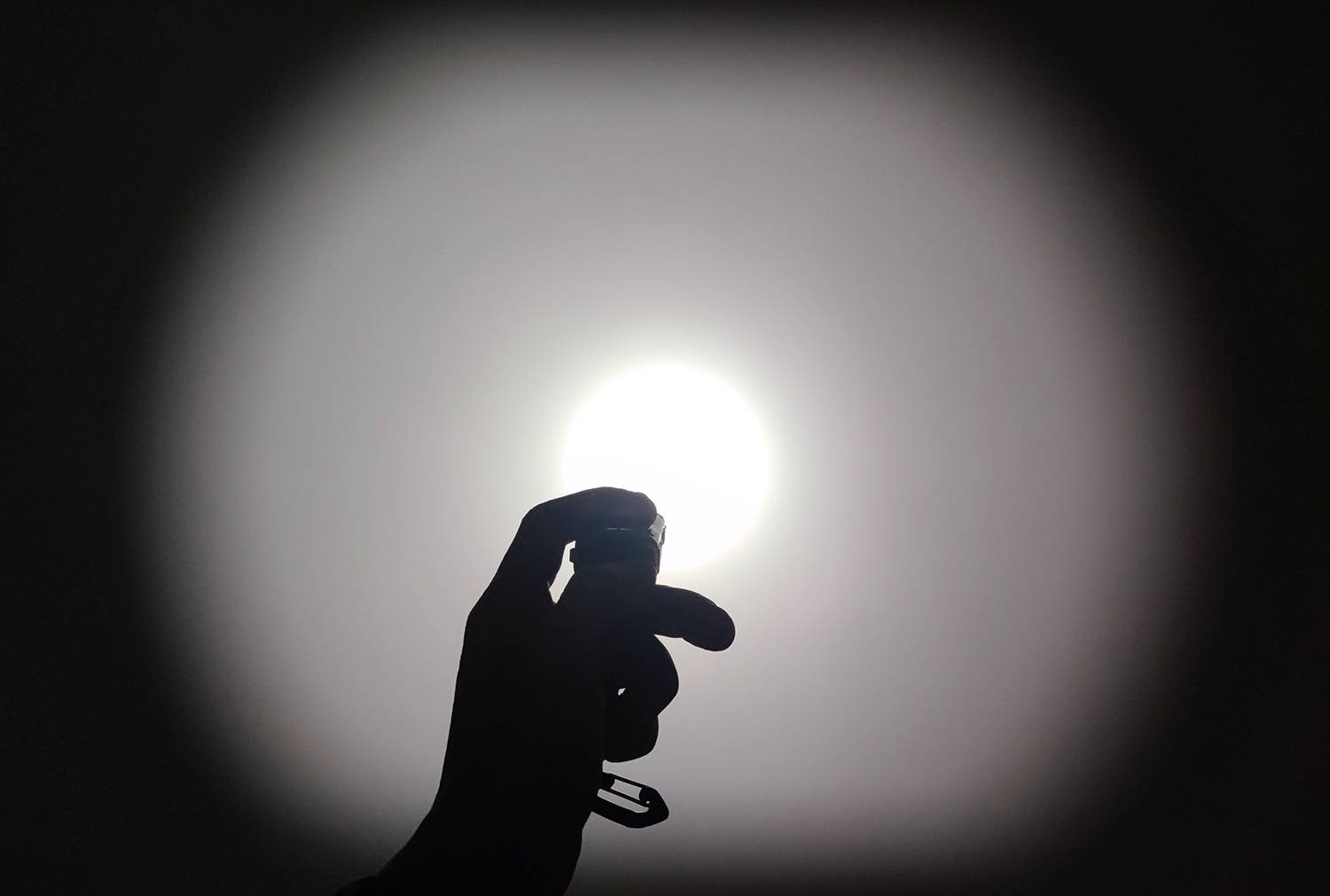 由于是两颗灯珠并排,再加上灯头较扁,副光斑呈上下为横线的圆形,泛光区较大,中间主光斑亮度较高且均匀,这是聚光的表现。