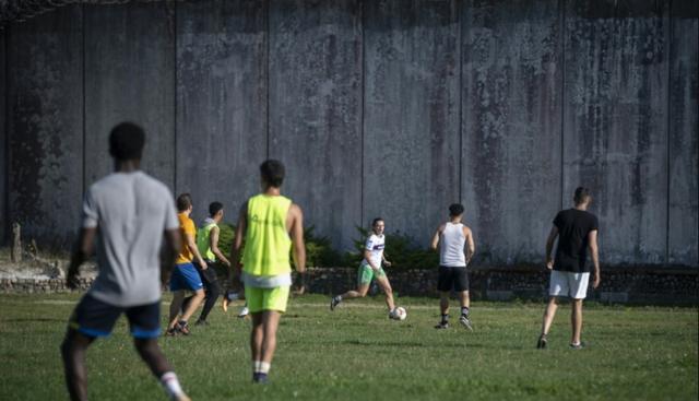 但其实这一幕发生在西班牙的一座监狱里,踢球的是住在男女混合区的囚犯。