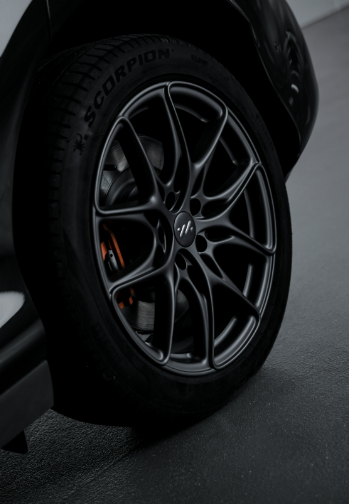 选装21寸倍耐力蝎子轮胎(含PNCS静音棉),从100km/h-0制动距离为33.76米。德国大陆的One-box全解耦电子制动还提供动能回收,效率提高32%。
