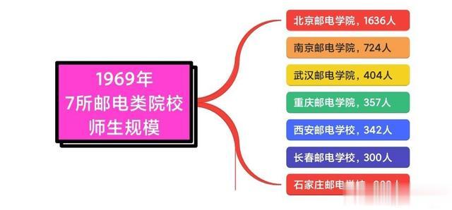 南京邮电学校本身的实力也是出类拔萃的,于1958年成为全国第2所邮电类高等院校。从1969年7所邮电类院校师生规模来看,北京邮电学院1636人一支独大,紧随其后的就是南京邮电学院724人,其他5所邮电类院校的师生规模都差不多。因此在发展过程中,南京邮电学院和北京邮电学院一样一直保持本科层次,其他5所邮电类院校在上世纪60年代末期,都曾经有降格中专的经历。