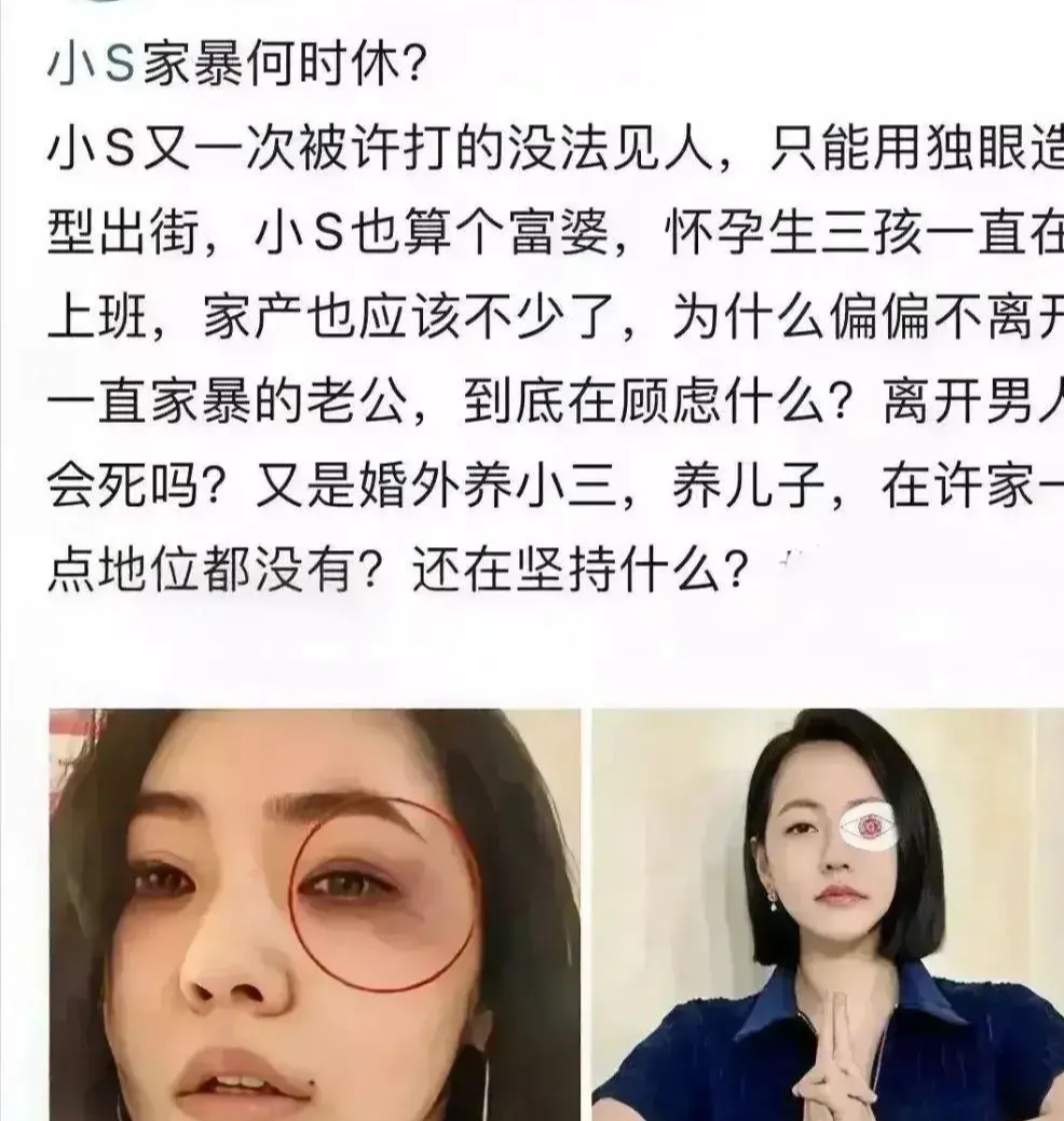 关于小S遭遇张雅钧家暴,网络上一直有传闻,小S也有为张雅钧澄清,是骑自行车摔的,真实性,可信度就要看网友自己了……