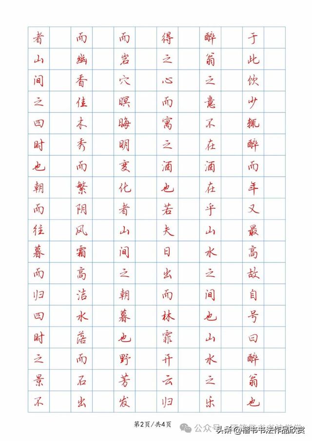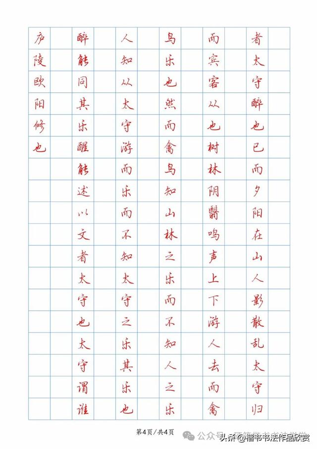 必藏!硬笔行楷版《醉翁亭记》临摹经典范本