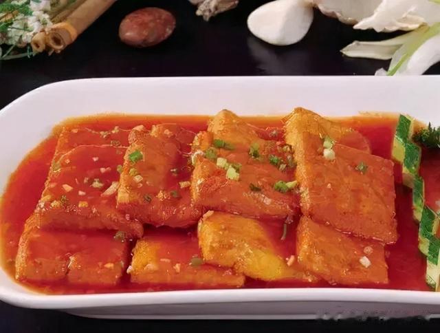 七、湘菜:组庵豆腐普通人对湘菜的印象,多半是重油重辣,但我最推崇的湘菜却是组庵豆腐。这道菜把嫩豆腐与鸡胸肉泥搅拌在一起,蒸出蜂窝孔,切片油炸,煨以干贝、虾干、火腿、猪脚、凤爪,最后入盏时只有一块豆腐和几片口蘑,其他一概弃之。