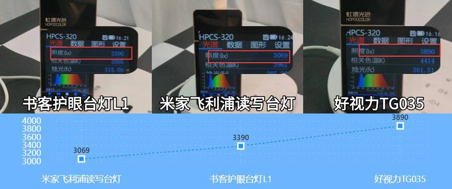 测试评析:书客护眼台灯L1>好视力TG035>米家飞利浦读写台灯