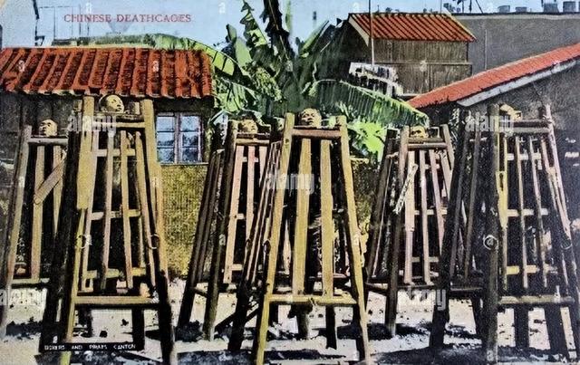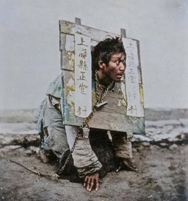 上图为清末时期的一名罪犯,他的头上戴着一种叫做“刑枷”的刑具,这种刑具是在脖子上戴上两块木头,并用挂锁封住。而枷锁的大小和重量取决于犯罪的严重程度,罪行越大重量越重,而该刑枷的重量最高可达到200磅,如果戴刑枷的时间足够长,将会导致巨大的疼痛和严重的畸形。