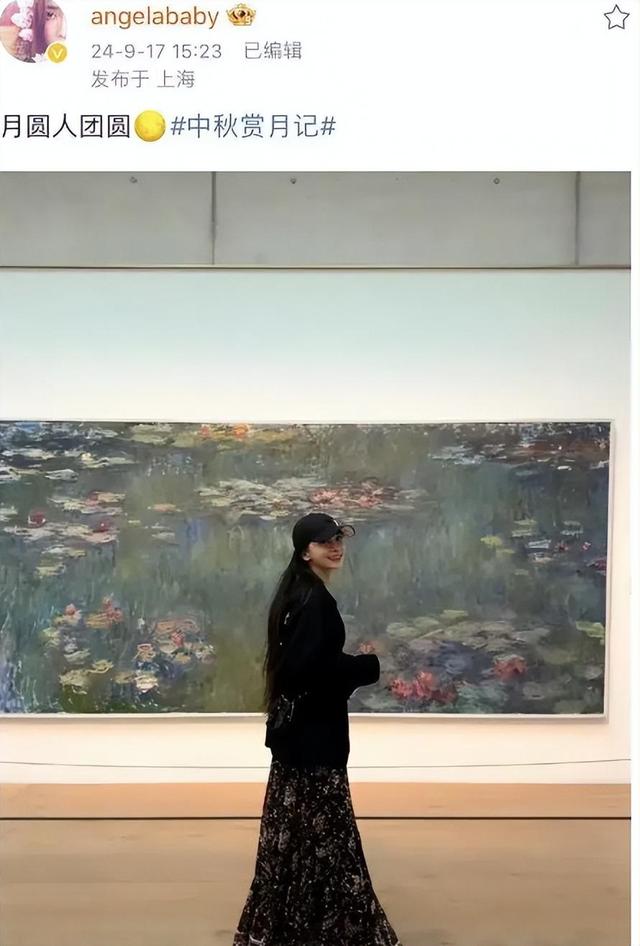 今年中秋节的时候,她也发文了,不过配图只有自己一个人的照片。