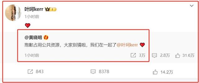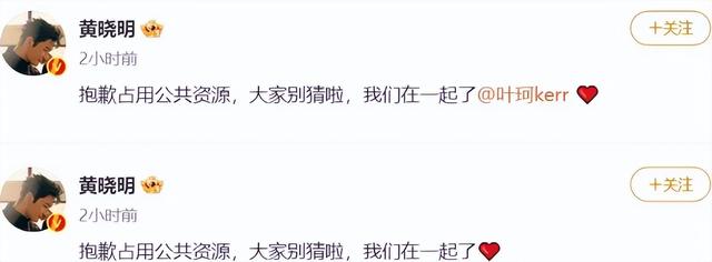 在最初一版的官宣内容里,黄晓明只是承认了恋情,并没有提到女友叶珂的名字。