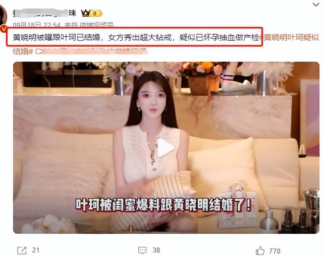 一段时间后,关于“黄晓明叶珂结婚”的消息,在网络上传得沸沸扬扬。