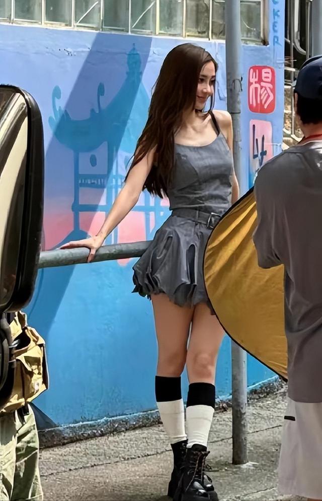 她站在大街上拍照,身上的衣服看起来也质感一般,不像是什么大牌。