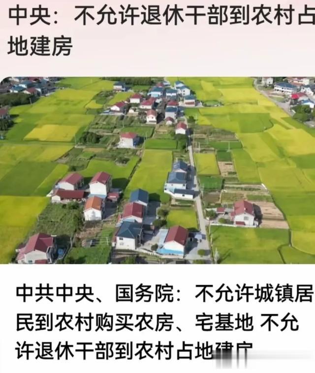 《意见》明确指出,“不允许城镇居民到农村购买农房、宅基地,不允许退休干部到农村占地建房。