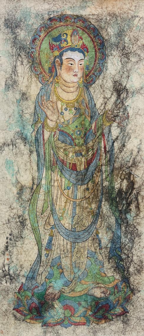 胡东东的敦煌佛像画作品,具有一种与生俱来的独特气质。每一幅画作都仿佛是从历史的深处走来,带着岁月的沉淀和文化的底蕴。她深入研究了敦煌艺术的精髓,将传统的绘画技法与现代的审美观念巧妙融合,创造出了属于自己的独特风格。