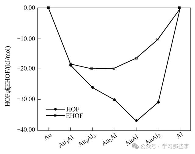 图6给出了Au-AI化合物的生成热(HOF)和有效生成热(EHOF)。