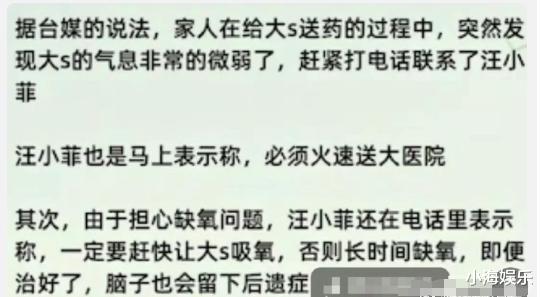 一月30日,张兰正在直播的时候,汪小菲疑似对张兰说了什么,并且说自己真的是急死了,随后张兰匆匆下了播,而根据台媒报道,汪小菲得知大S在日本拉去急救,第一时间打电话要求要进大医院,并且必须给大S吸氧。
