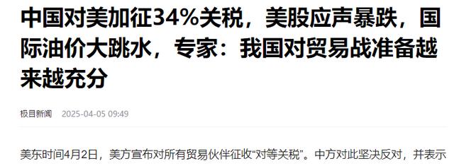 极目新闻2025-04-05——中国对美加征34%关税,美股应声暴跌,国际油价大跳水,专家:我国对贸易战准备越来越充分
