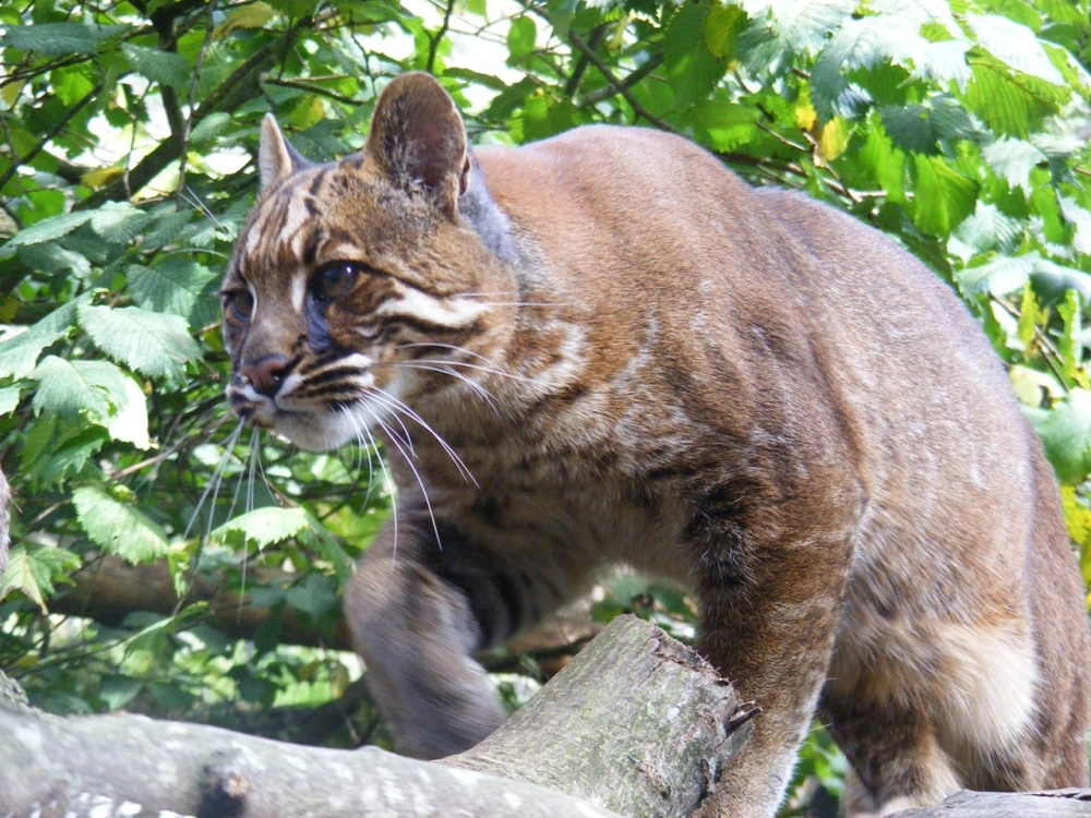外观上,亚洲金猫最显著的特征是它们拥有一张大花脸,像京剧脸谱一样。这在所有现代猫科动物中都是独一无二的特点。通常情况下,亚洲金猫的体色为棕红色或金褐色,身上的斑点不太明显,也有一些变种,其体毛可能呈灰色或黑色。
