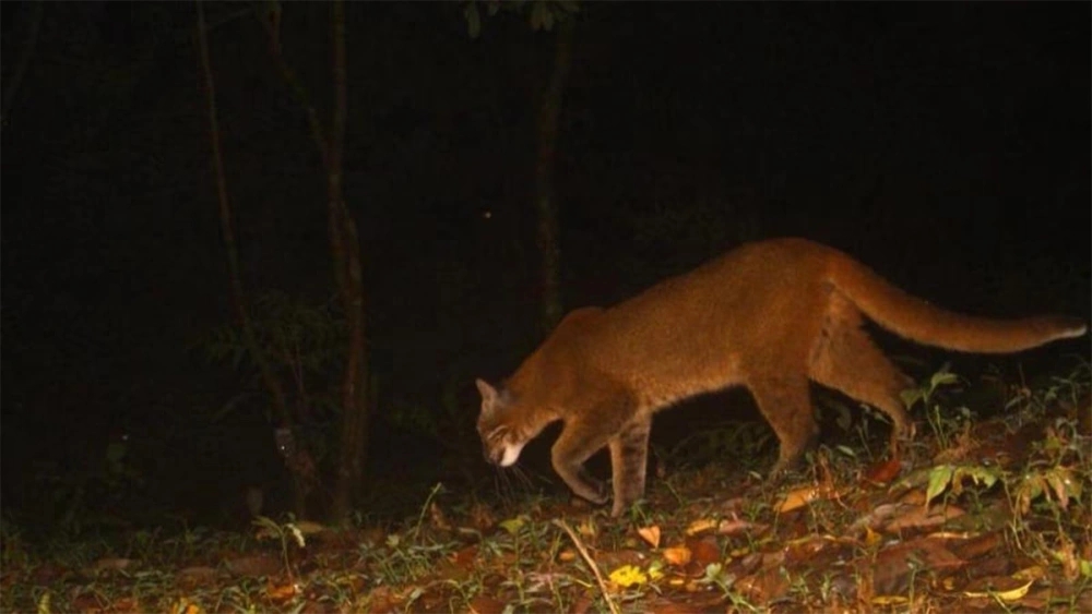 视频拍摄的时间是在9月初,大约凌晨4点多的时候。画面中出现了一只体态酷似小豹,身体强壮的猫科动物。由于视频画面十分清晰,再加上这只动物身上的黑色尾尖等明显特征,工作人员很快就鉴定出这只动物,确认它是亚洲金猫。