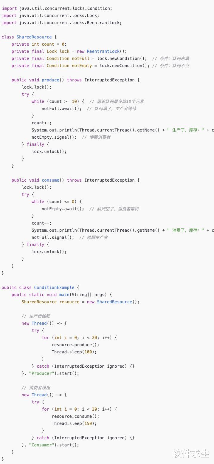 Condition 的基本用法:生产者-消费者模型为了直观地展示 Condition 的用法,我们来看一个经典的生产者-消费者模型: