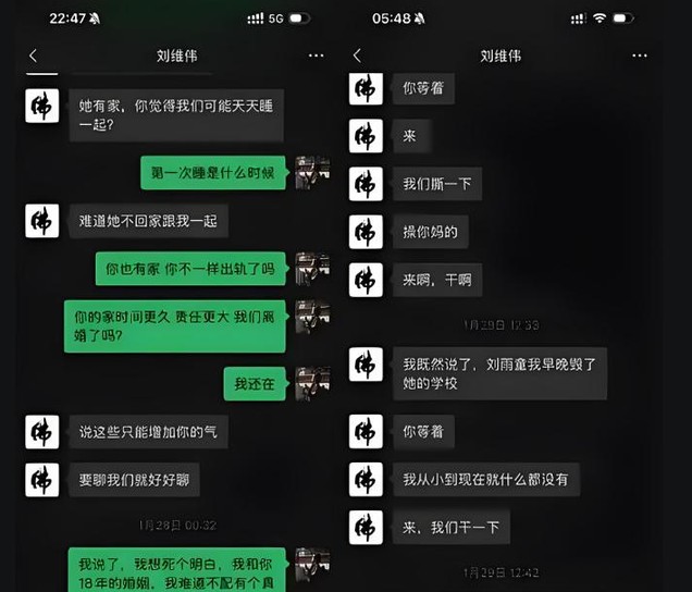 直到2025年的1月份,刘维伟这位慈父真是要牛上天了,居然直接跟女儿开视频就与情人接吻,丝毫不怕给孩子留下什么心理阴影。