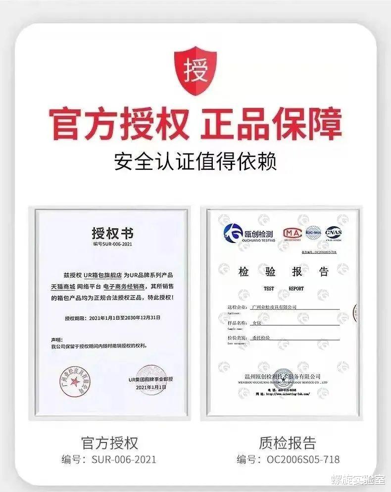 有的旗舰店怕你怀疑,详情页还专门放了张官方授权图,赌的就是你不会仔细看。例如,授权方是业松皮具公司,被授权方是UR箱包。