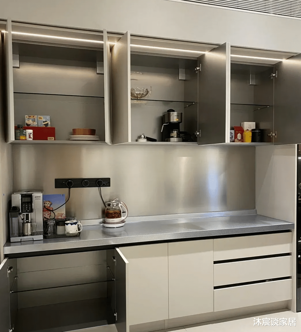 周姐家第二次装修,厨房装了不锈钢橱柜,本以为会很土气,去参观了一下还真别说真是高级感满满。