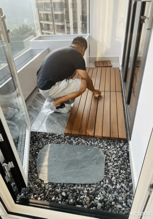 有些户型只有一个阳台,要同时满足生活与休闲,在设计上真的要花点心思。小丸子在装修第二套房的时候,就把阳台一分为二了。一边是生活,做洗衣晾晒区;另外一边是风景,打造了一个漂亮的小花园。小花园里铺上了防腐木与鹅卵石,简直将诗意的氛围感拉满,后期还有不少的绿植与鲜花进入,邻居们看了都很羡慕,都说是很棒的设计。