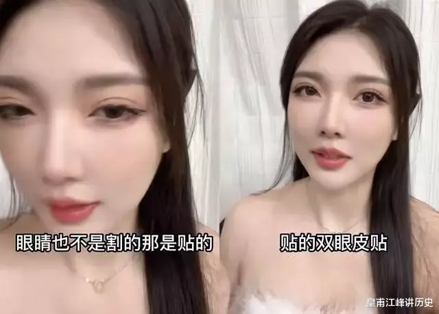 至于欧式大双眼皮,也不是后天割的,但有用双眼皮贴调整形状。
