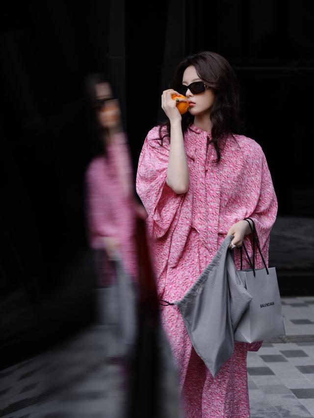 吴艳妮在成都穿着短裤大腿看起来很粗壮,表情自信又张扬