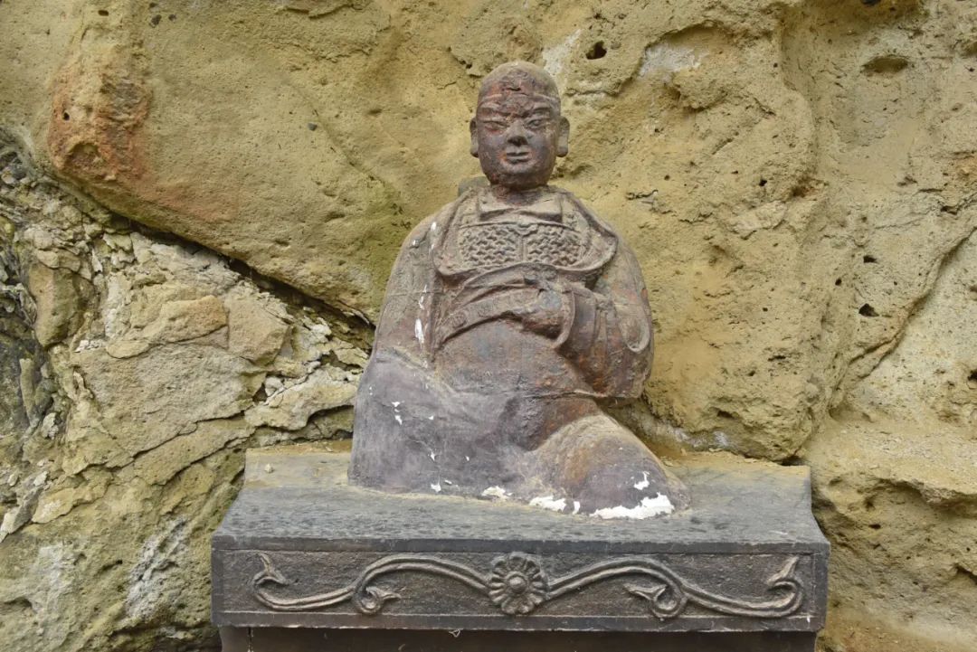 千手千眼观音洞口的这两尊塑像,应该是当地的土地公婆吧,穿着清代官服,全国各地的土地公婆都不一样,放在一起一定是一个很有意思的事情。