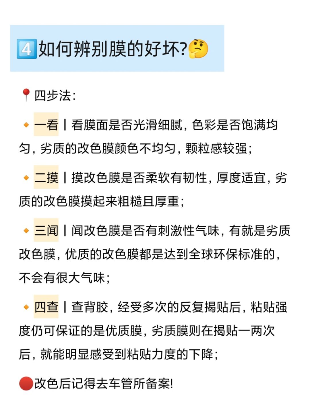 3⃣️三闻|闻改色膜是否有刺激性气味,有就是劣质改色膜,优质的改色膜都是达到全球环保标准的,不会有很大气味;