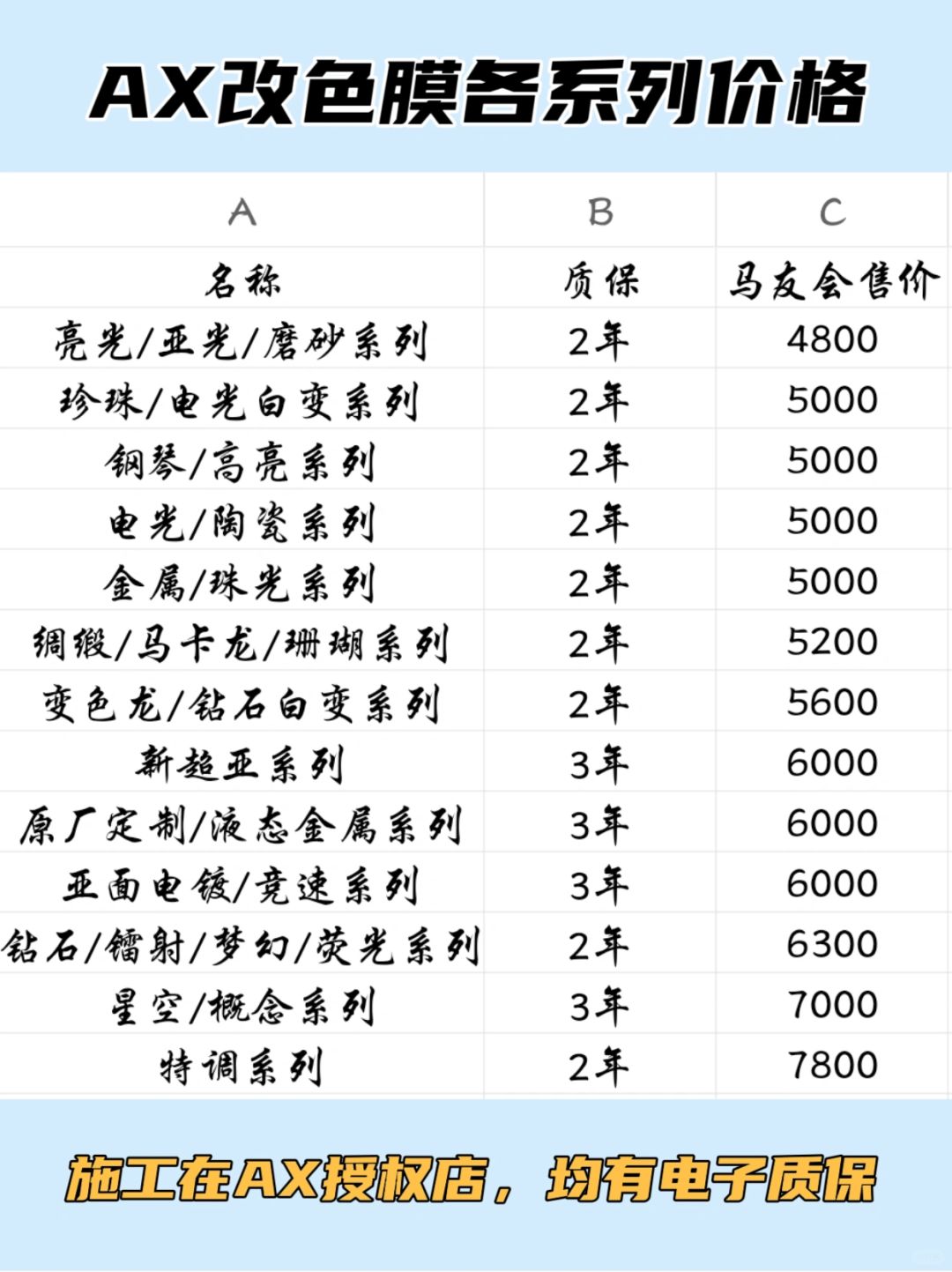 📍可以在车友👗内与其他车友一起团go贴膜,几乎每个城市都有授权店,AX4800起,CYS3800起;
